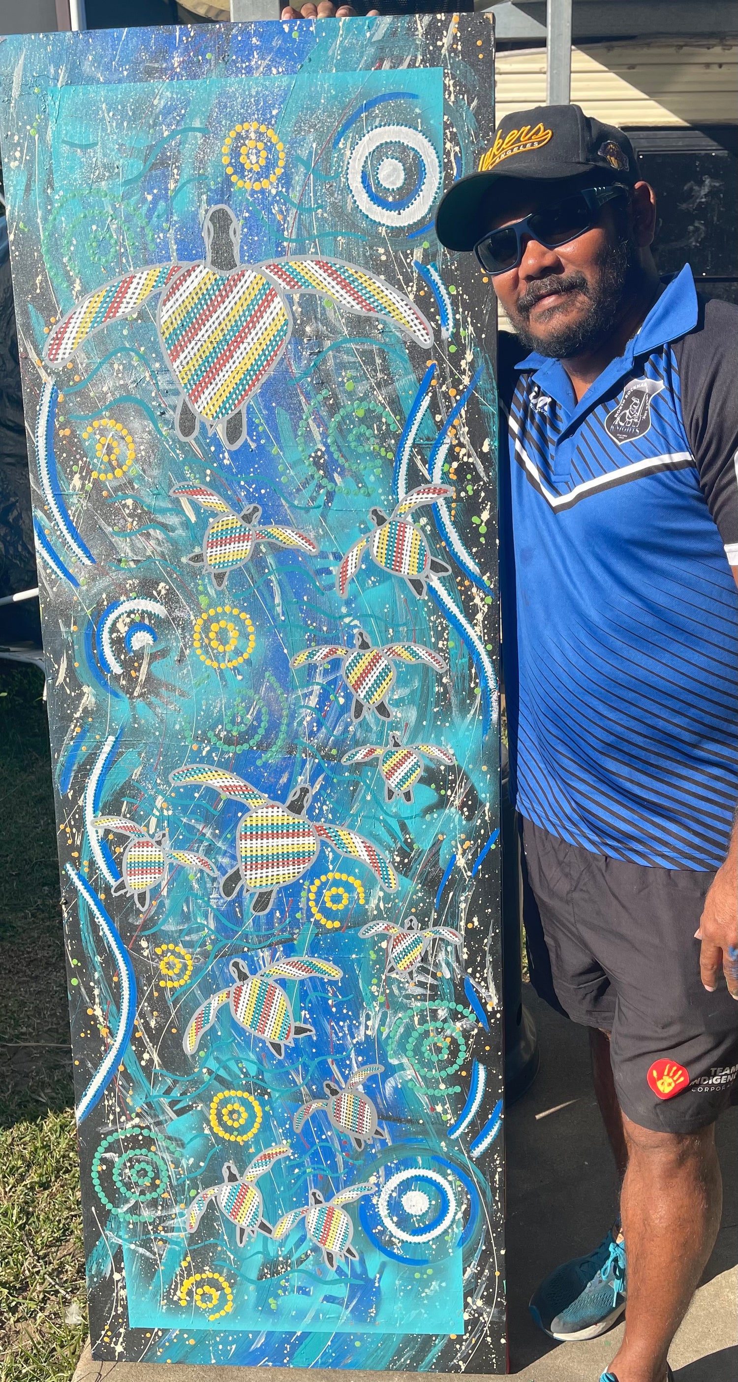 At Black Magic Art, we excel in the art of crafting one-of-a-kind Aboriginal art pieces, carefully tailored to the unique vision of each customer. From personalized portraits and expansive murals to product and gift printing, our acclaimed artist, James Waterton (Ghungalu and Jiman man), possesses an exceptional talent that empowers us to turn your ideas into visually captivating realities.